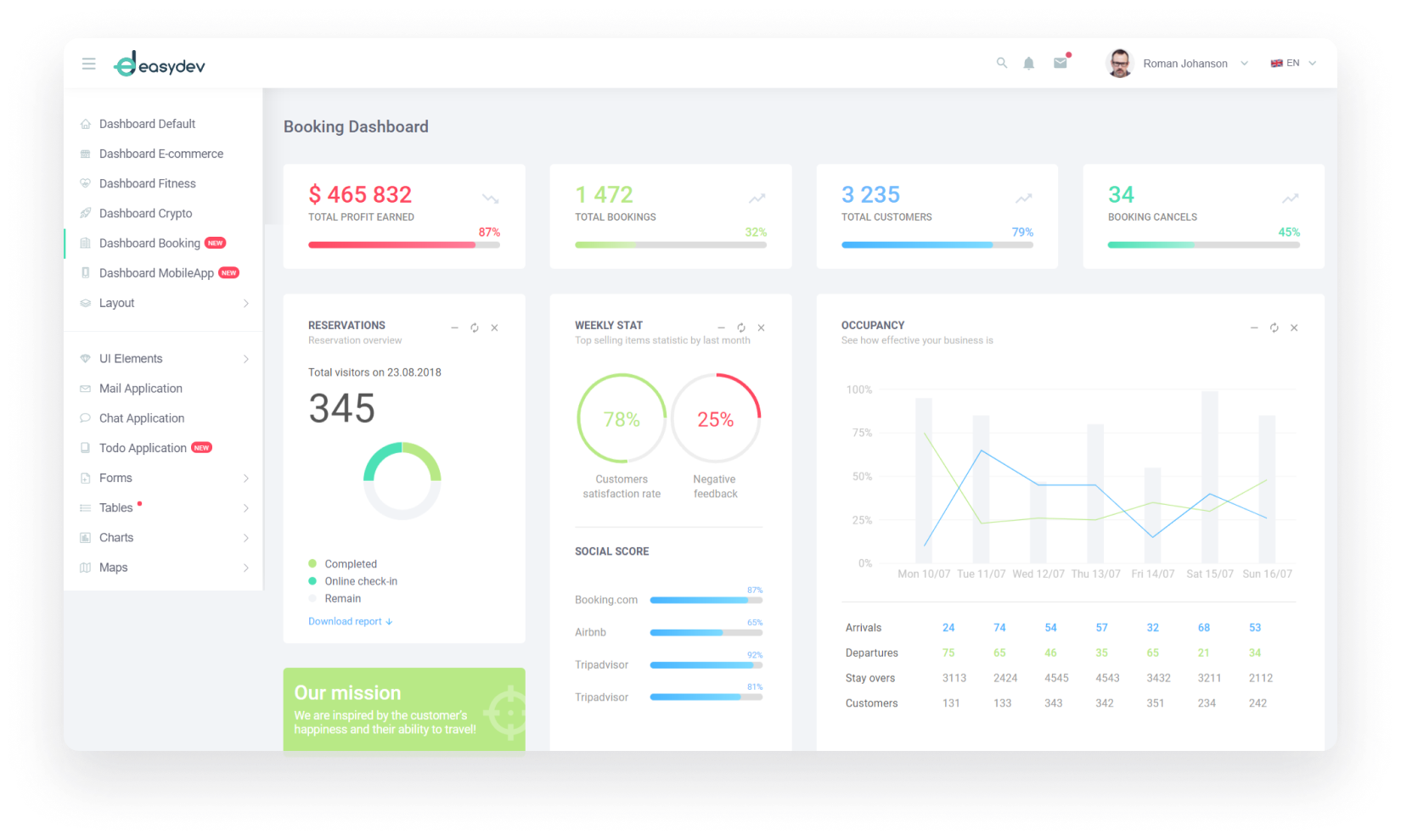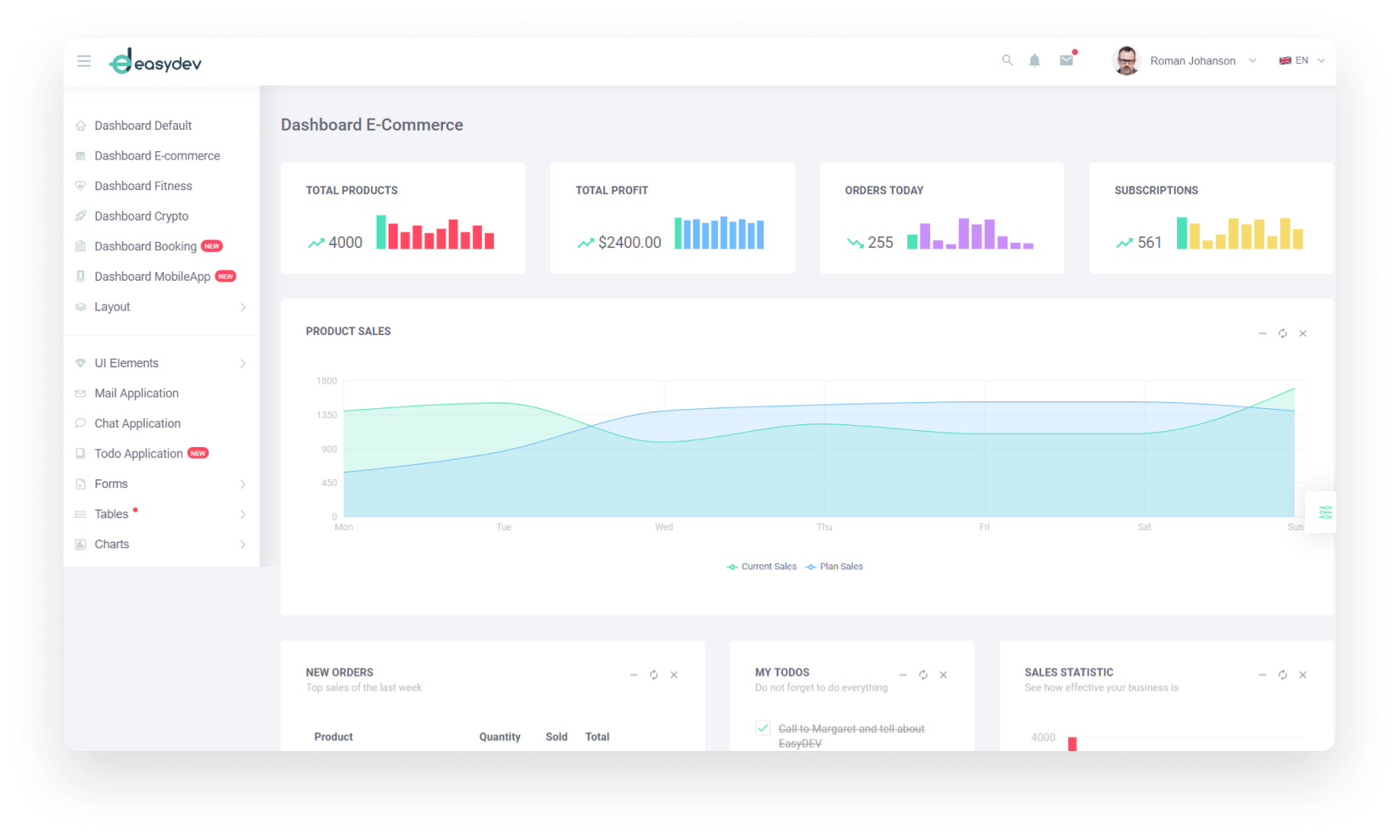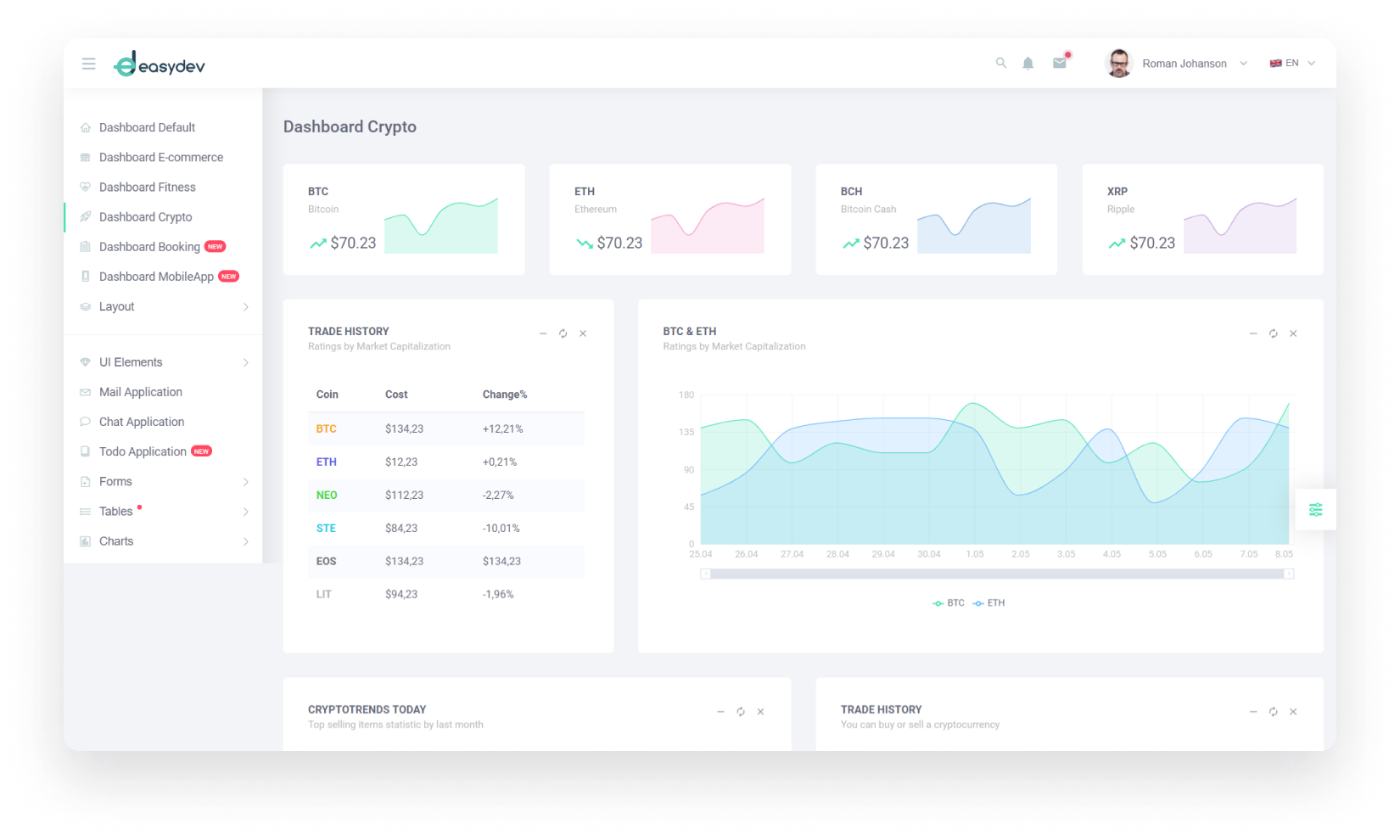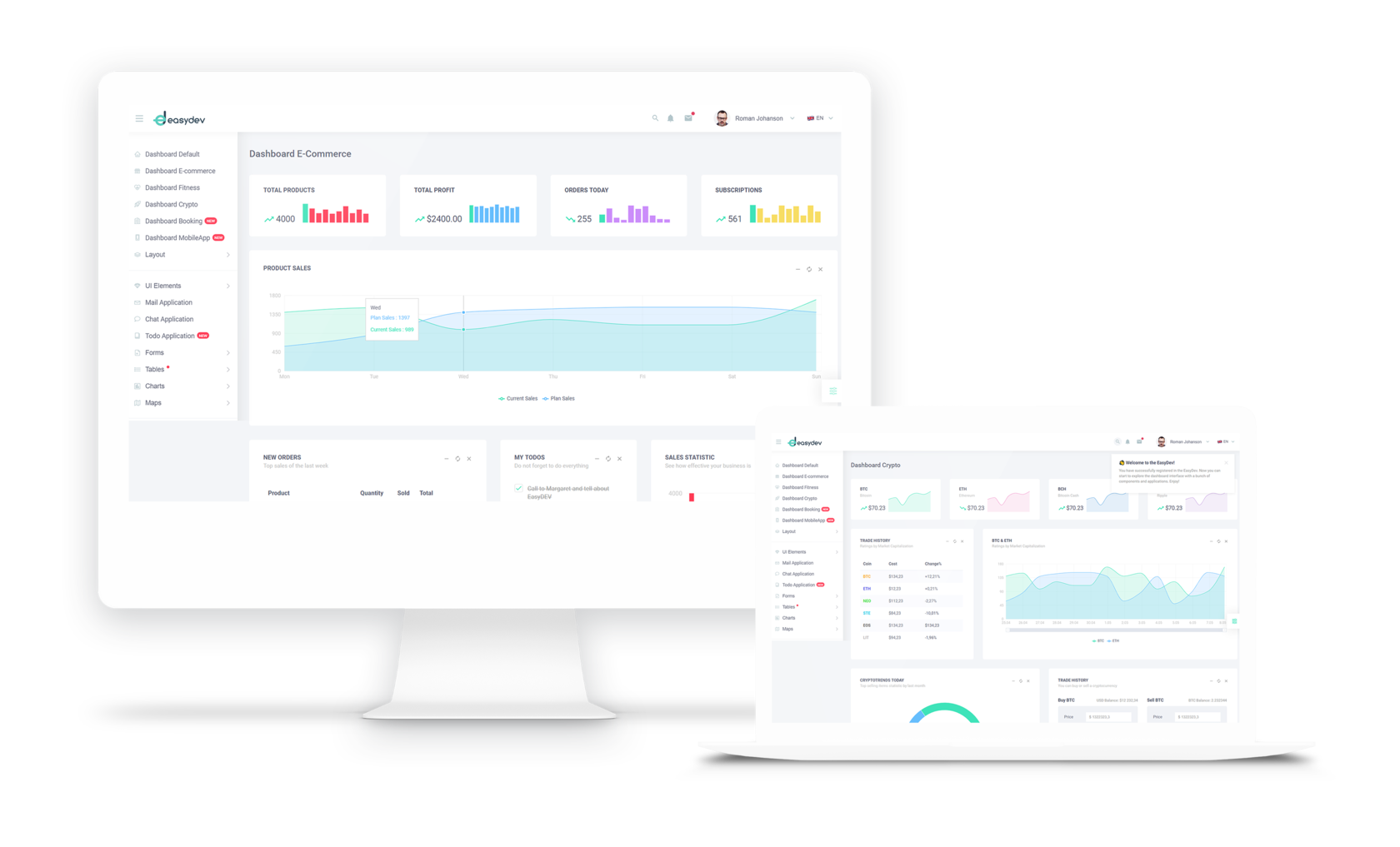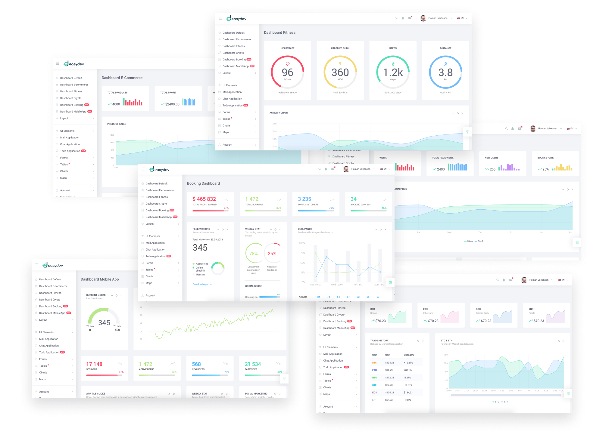 EasyDev is a modern dashboard template based on the most populars frameworks: React and Angular. You can choose the framework that you like more and enjoy working with our product to the full. It allows our customers to create their projects easily due to a wide choice of components and design styles.