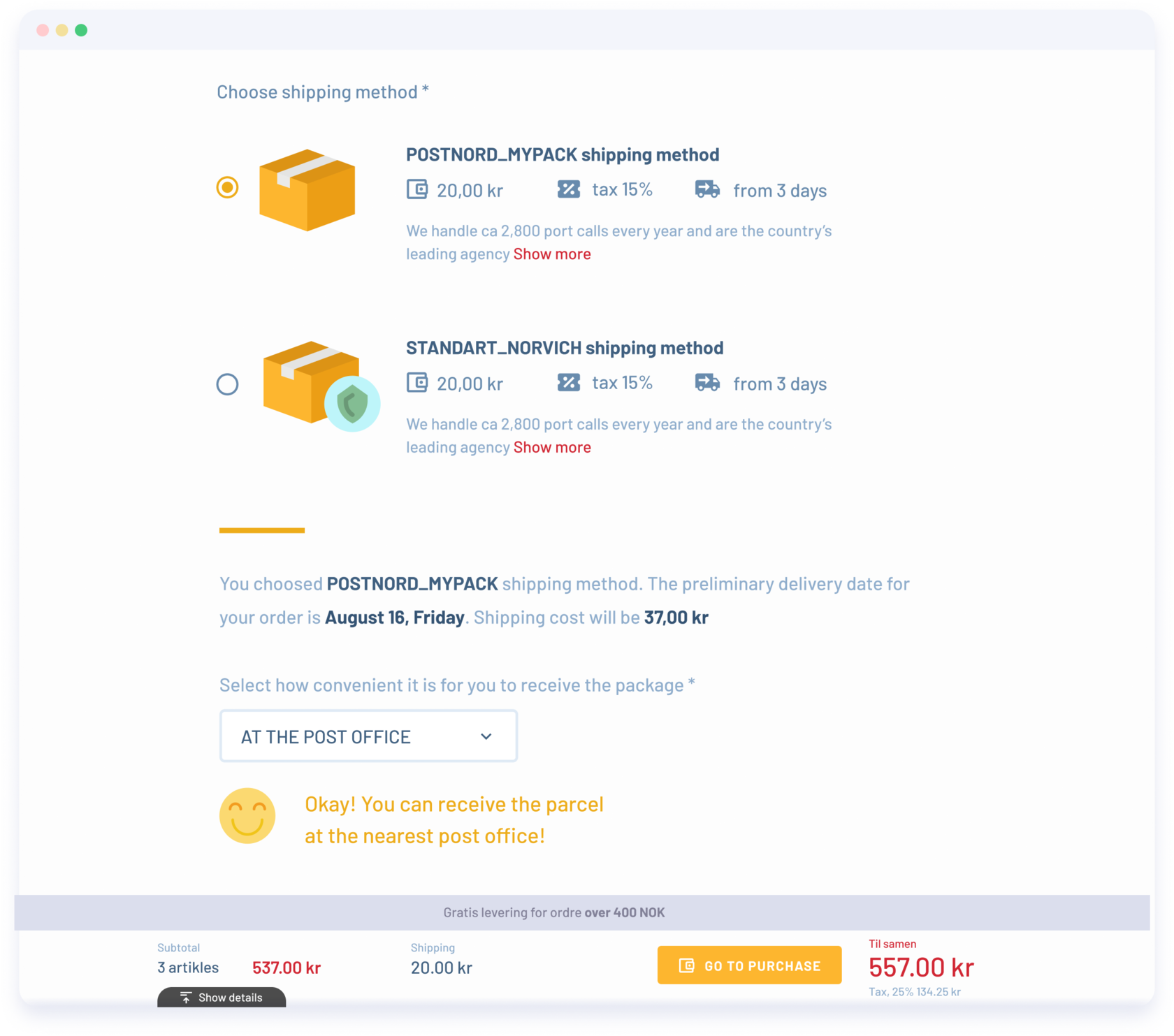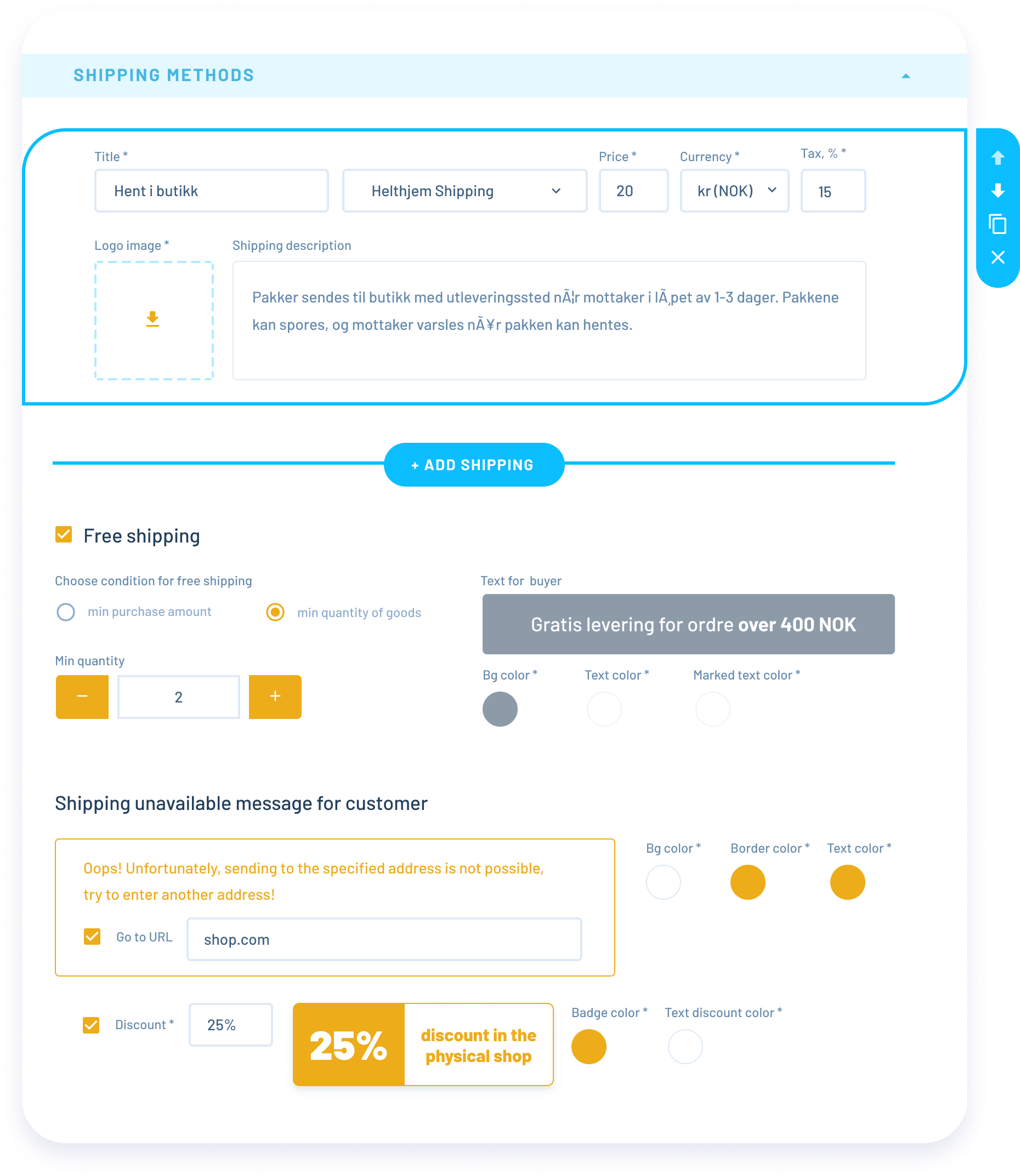 In addition to the service for creating stores, it was also decided to make a service for so-called "return shops", since returning goods that didn't fit the buyer is also done through the delivery service.